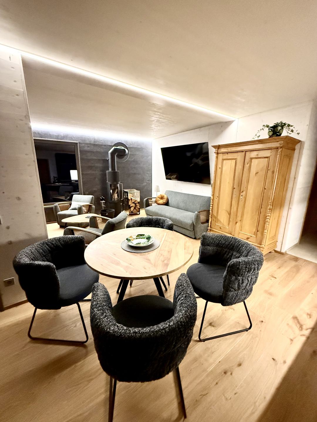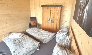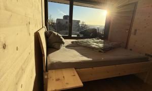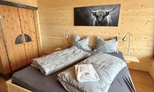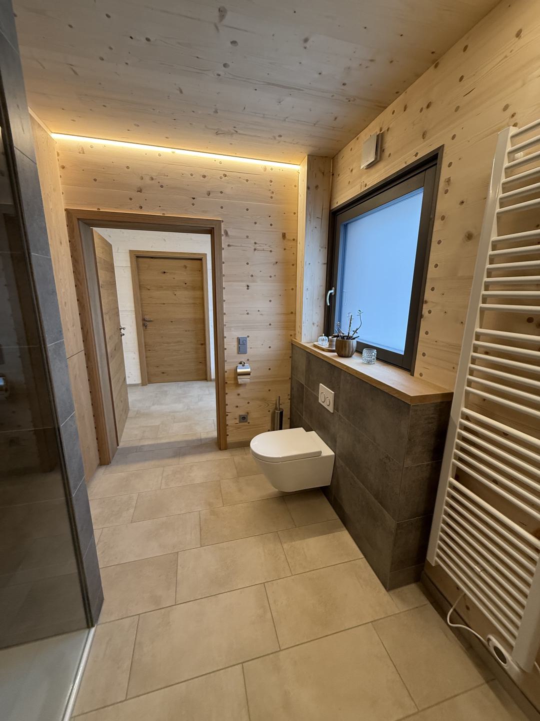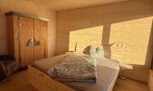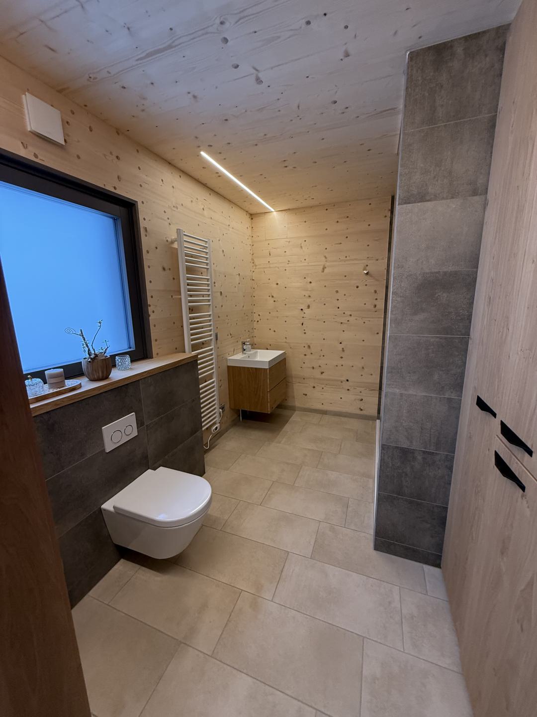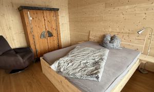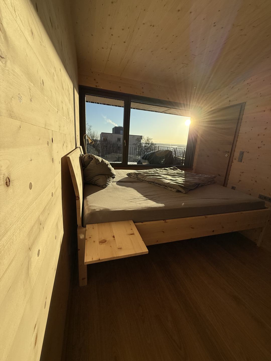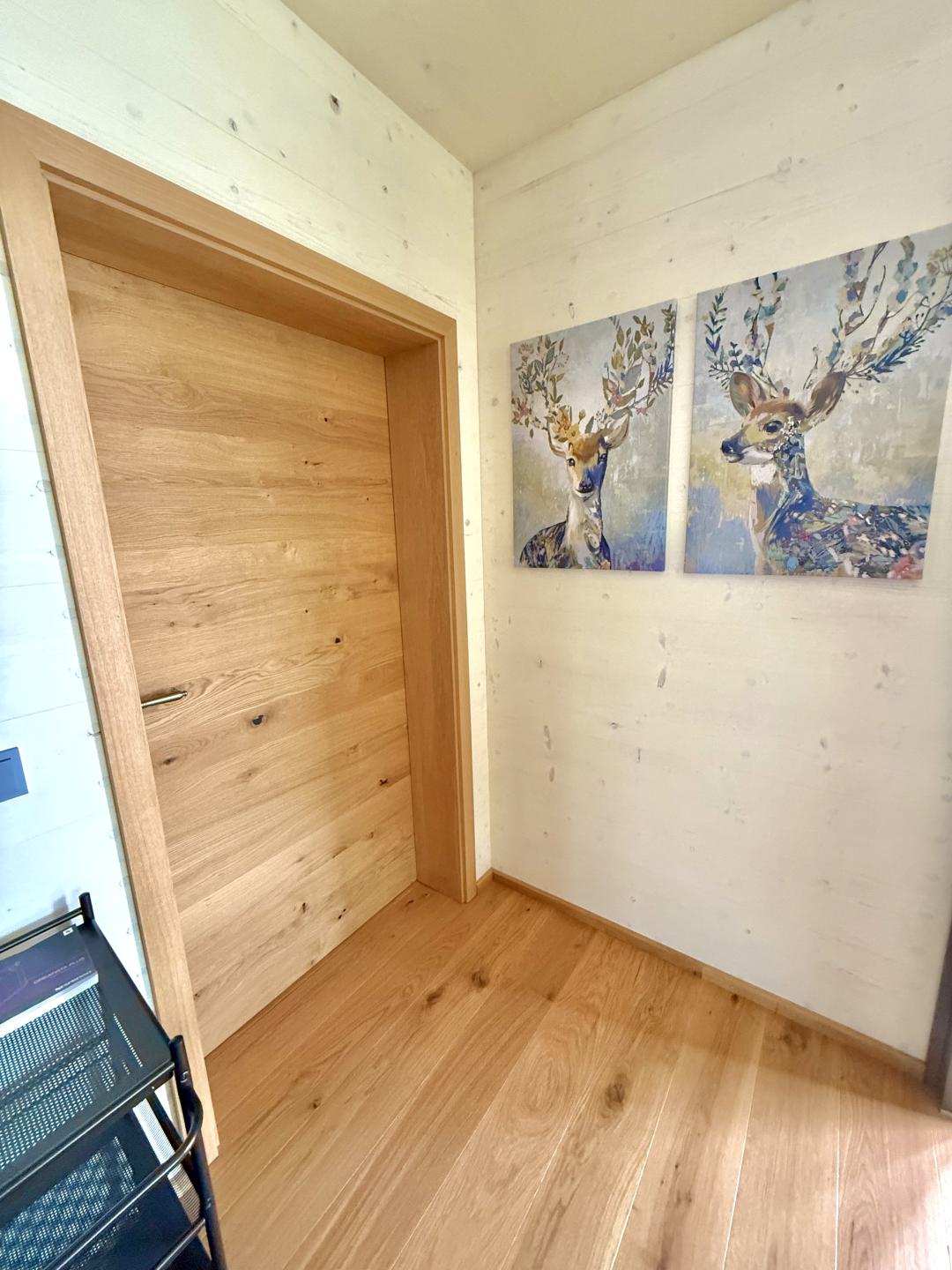Unsere Wohnung ist absolut barrierefrei und verfügt über ein Schlafzimmer mit einem Zirben-Doppelbett.