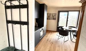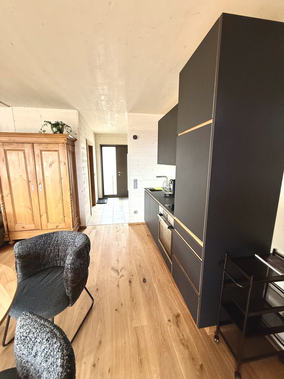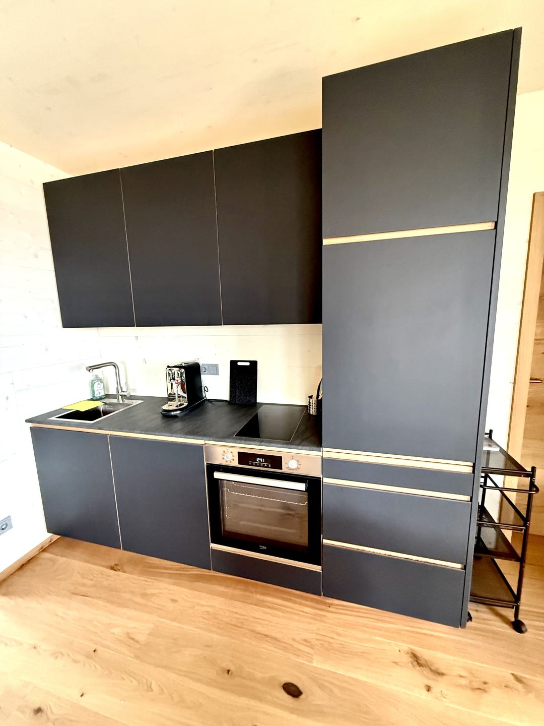 ● Voll ausgestattete Küche mit Herdplatte, Kühlschrank, Kaffeemaschine und Backofen + Esstisch für 4 Personen