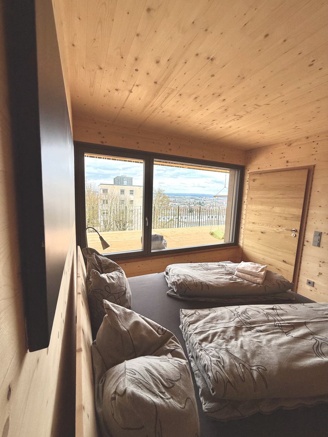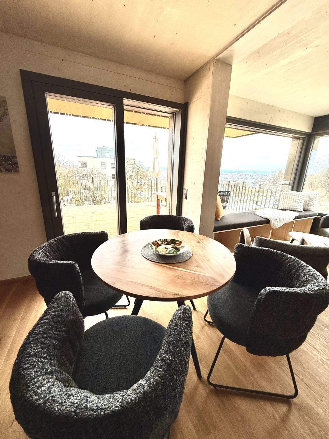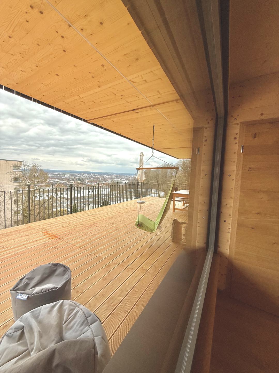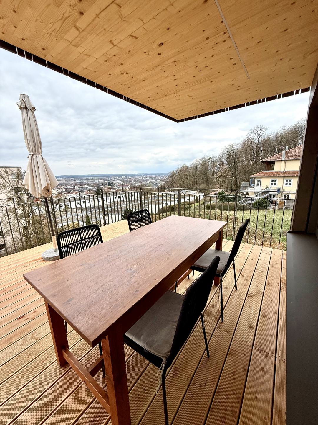 Genieße den Fernblick über Amberg und nutze unsere komfortabel ausgestattete Wohnung. Durch die "Holz100-Bauweise" von Thoma profitierst Du auch von einem einzigartigem Raumklima.