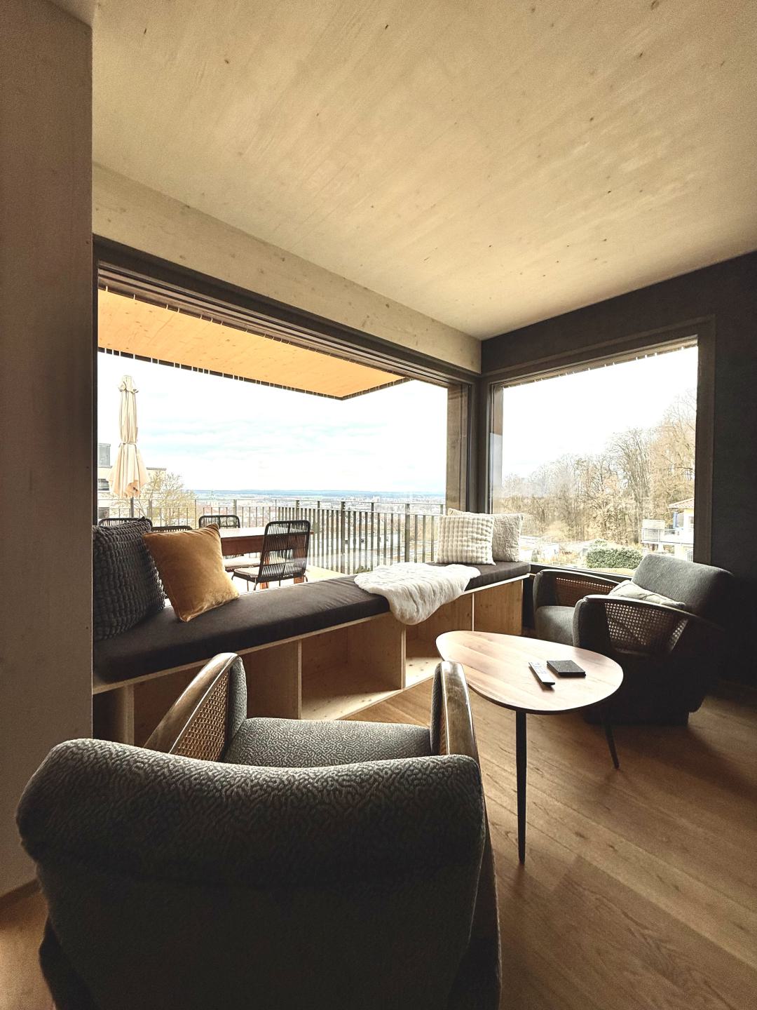● 1 Wohnzimmer mit Loungesesseln und Sitzfenster