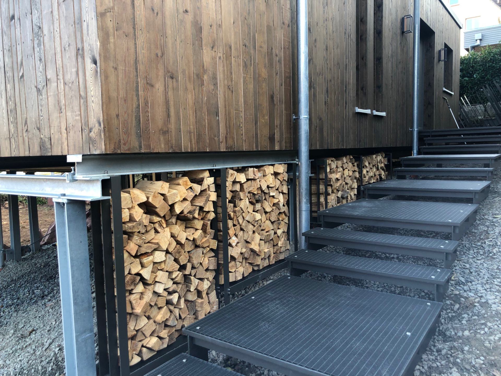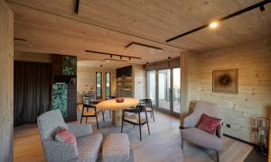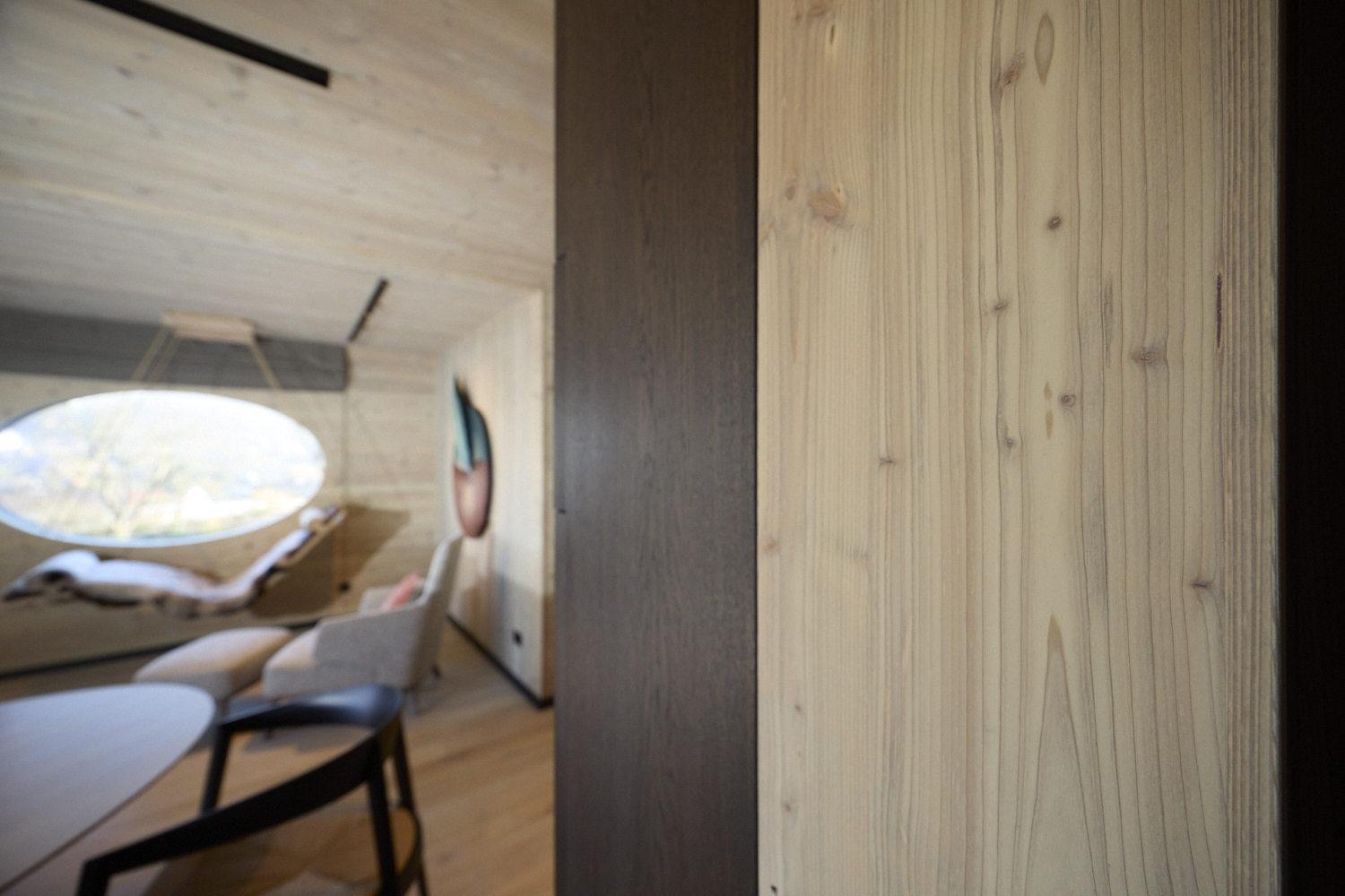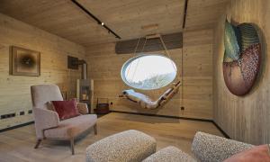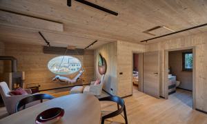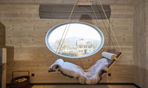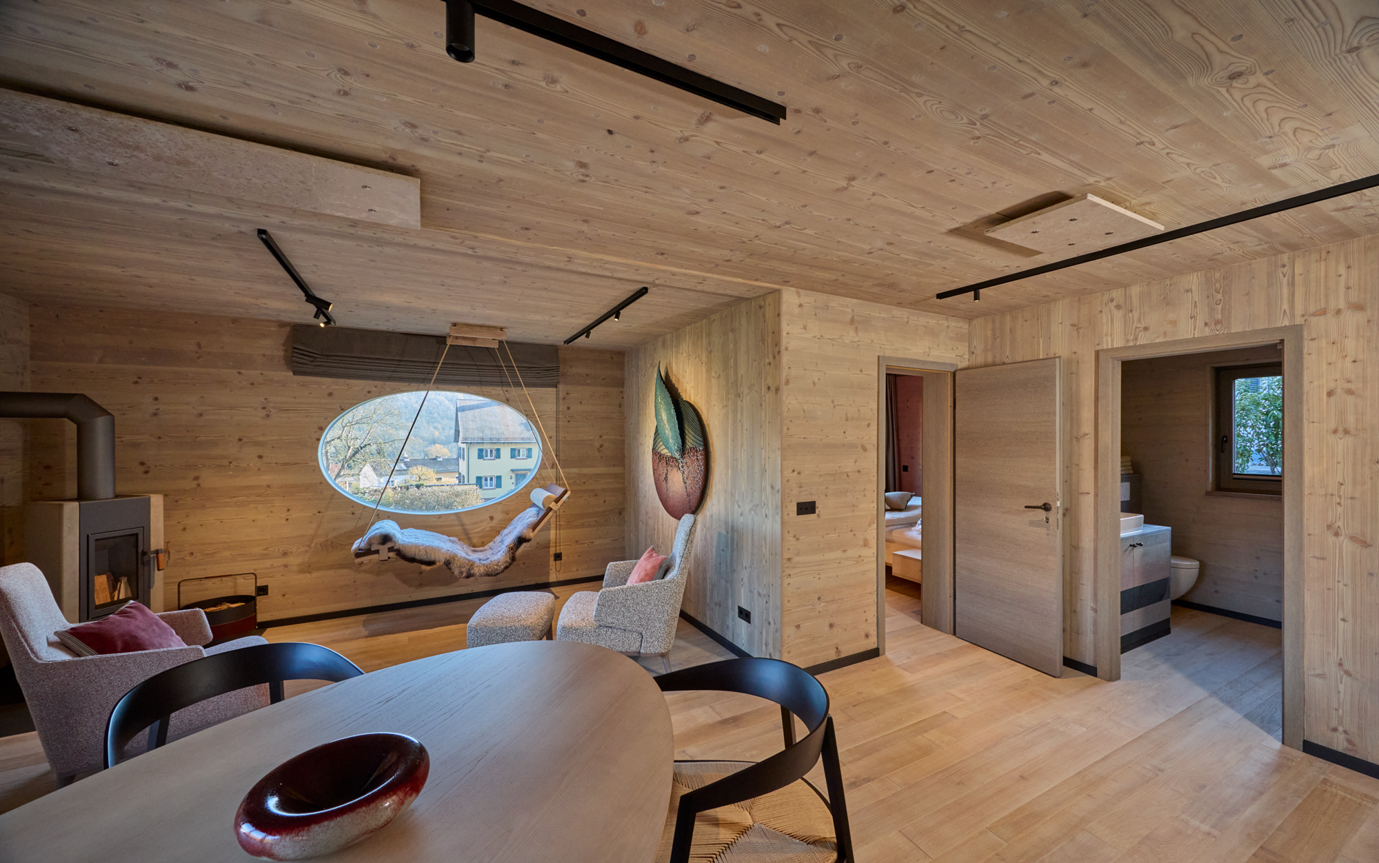 - Übergehend in einen Bereich zum Entspannen mit Hängeliege und Speicher-Holzofen
