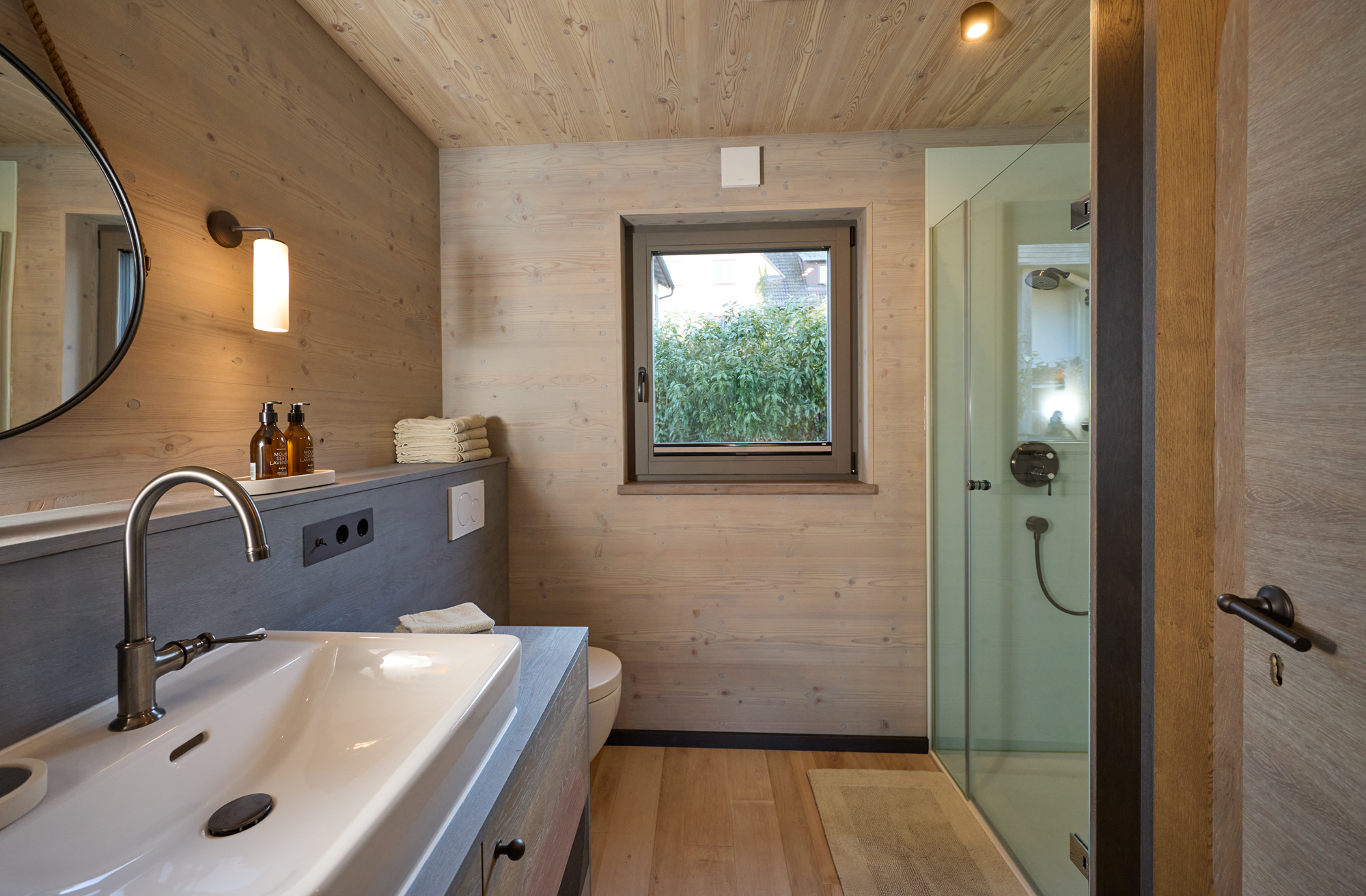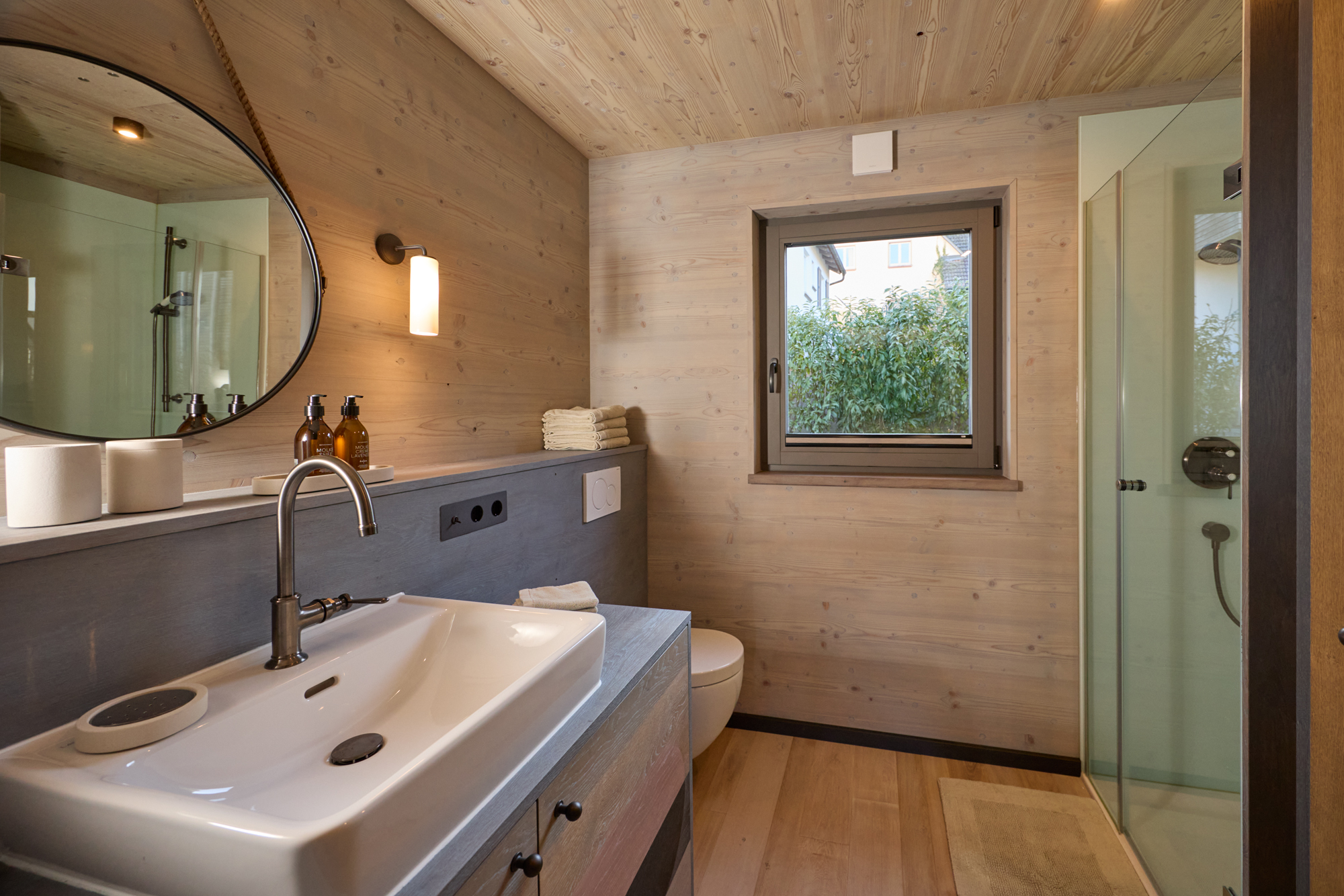- Ein modernes und clever durchdachtes Badezimmer mit Regendusche